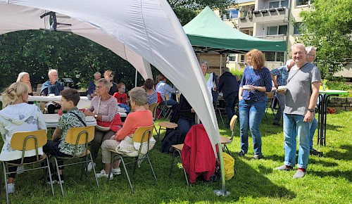 Für das leibliche Wohl ist bestens gesorgt: Genieße Kaffee, Kuchen, kühle Getränke, Bratwurst oder vegane Köstlichkeiten vom Grill.