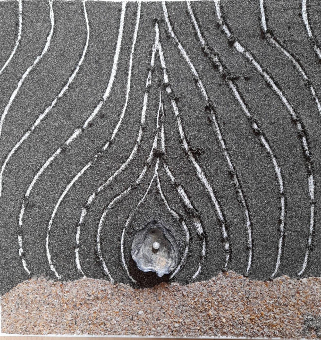 Angeregt durch die Arbeiten ihrer Schülerinnen und Schüler zum Thema „Wind – Sand & Steine“ begann Ruth Tillmann 2001, in ihrem „Un-Ruhestand“, selbst mit Sand zu gestalten. Die Farbvielfalt dieses Naturmaterials fasziniert sie bis heute. Auf Reisen nach Marokko, Neuseeland, Italien, Griechenland und Ägypten entdeckte sie immer neue Ausdrucksformen des Elements.