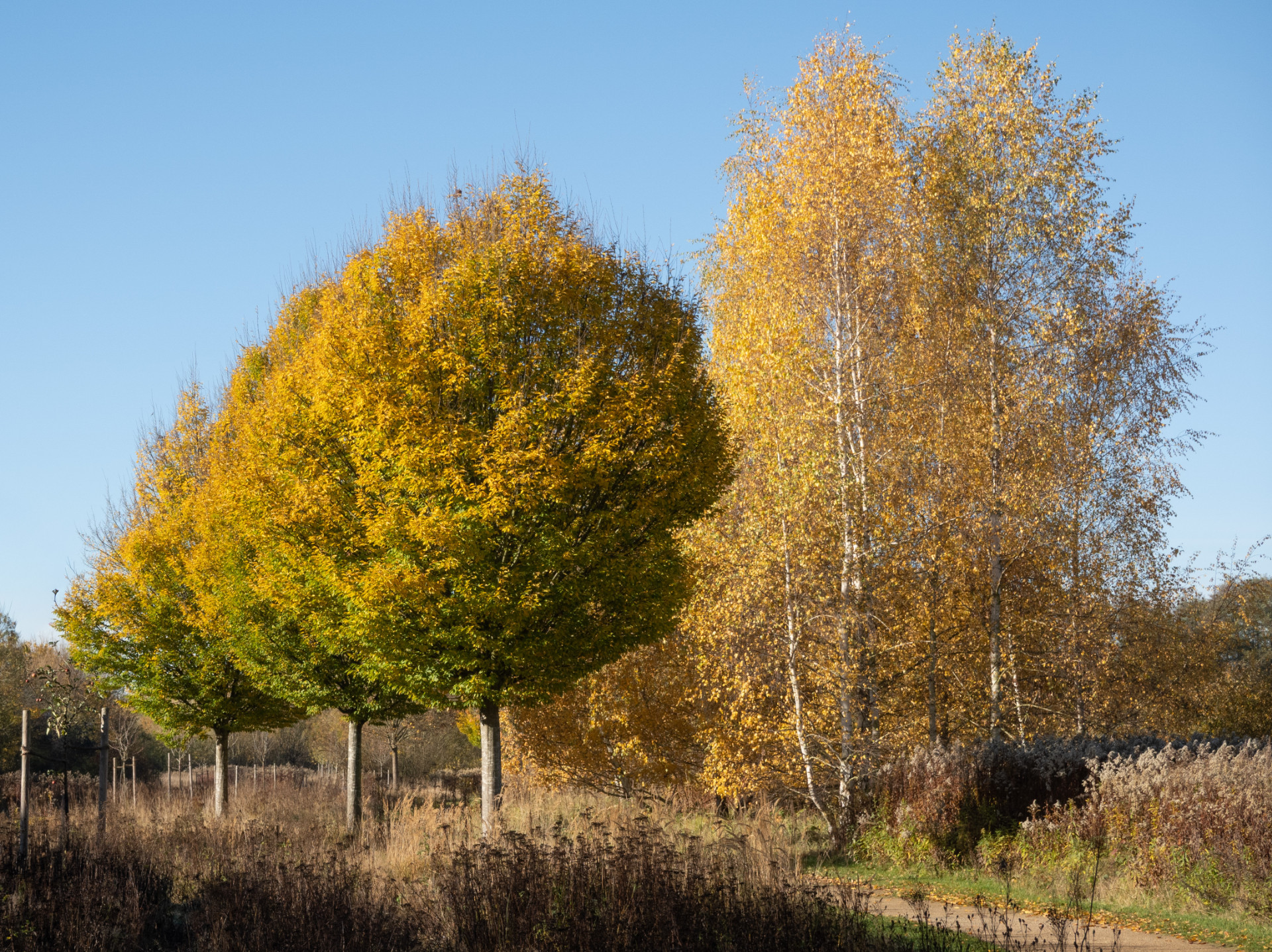 In wunderschönen Herbstfarben leuchten jetzt die Hainbuchen und Birken in der Schunterniederung. Foto: Michael Theess