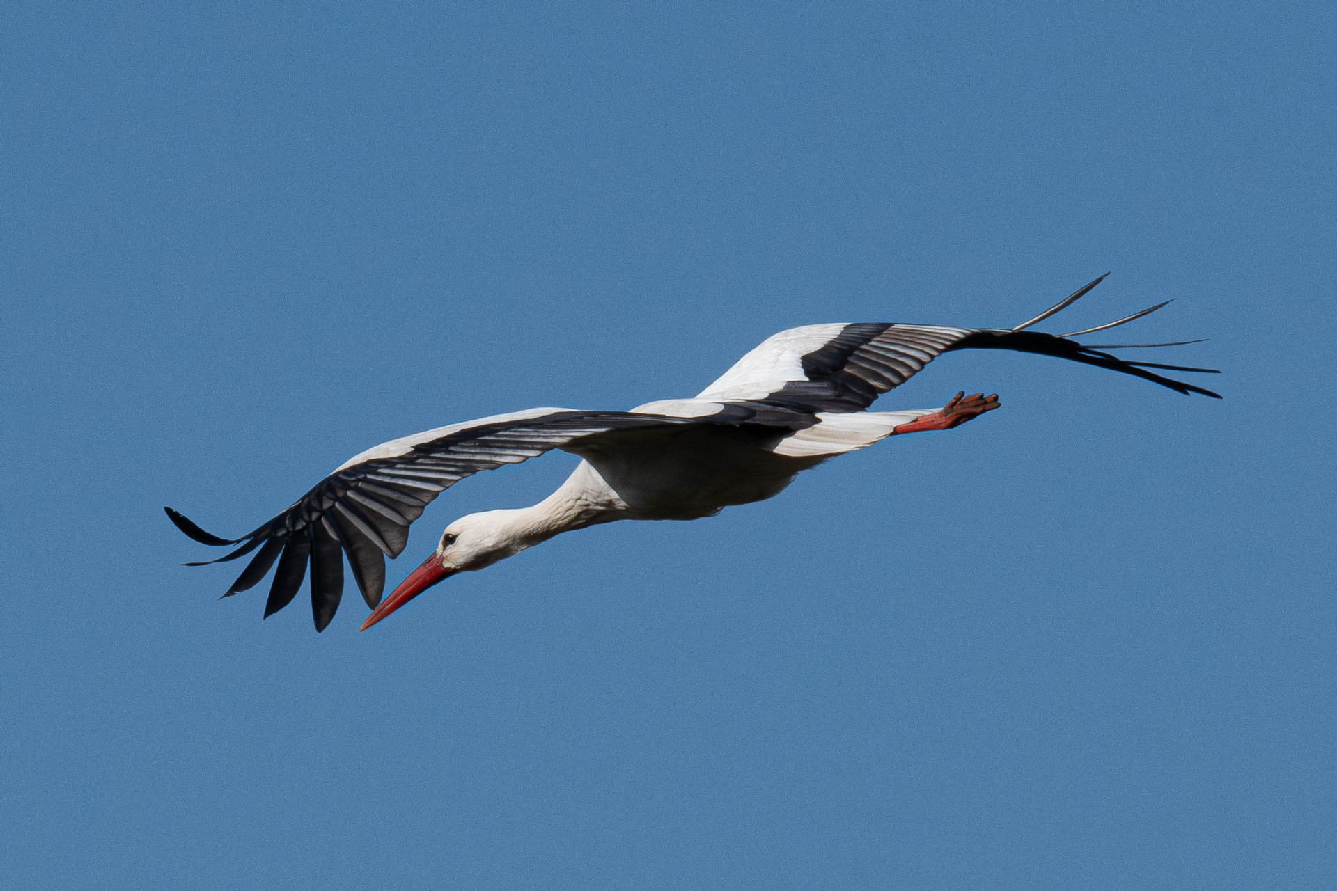 Ein Weißstorch im Anflug auf das Nest in Braunschweig-Dibbesdorf