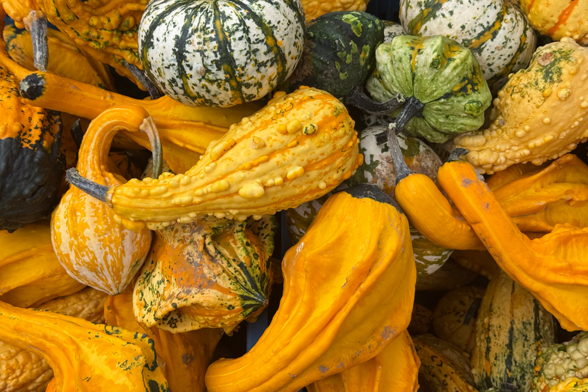 Schnitzkürbisse auf dem FUN-Gemüseacker: Ideal zum Schnitzen gruseliger Gesichter zu Halloween.